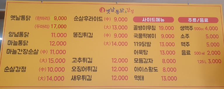 양념통닭 1마리 11,000원, 옛날통닭 2마리 17,000원, 국물떡볶이 9,000원 37,000원에 시켜서 실컷 먹었다는....