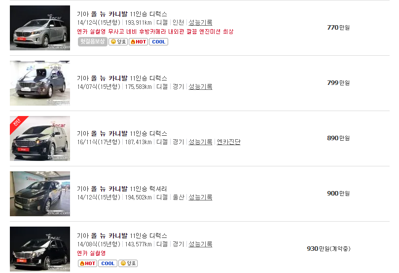 물론 연식이 적은 차량을 구매하면 좋겠지만 가성비 좋은 차량 을로 뽑아봤기 때문에 그런 점은 감안해 주시면 좋겠습니다.